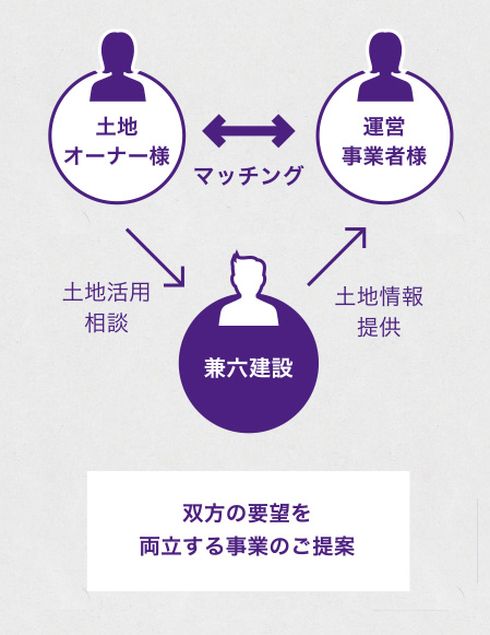 半世紀以上の長い間、地元に根づいて営んできた我々だからこそ用意できる土地があります。企業様やオーナー様のマッチングの場として、ご活用いただければと思います。
